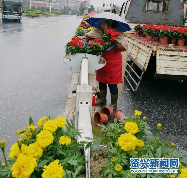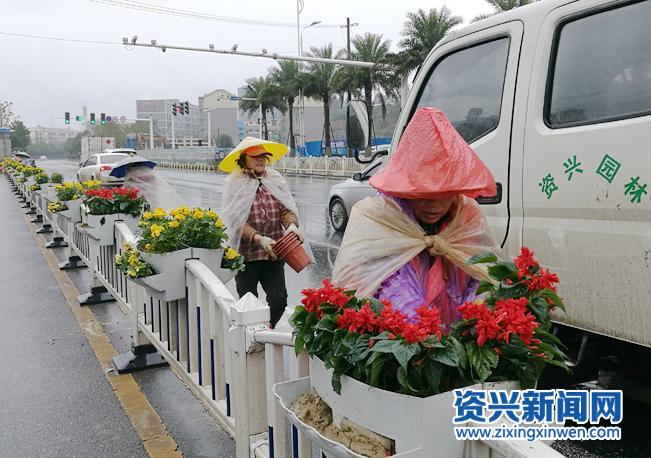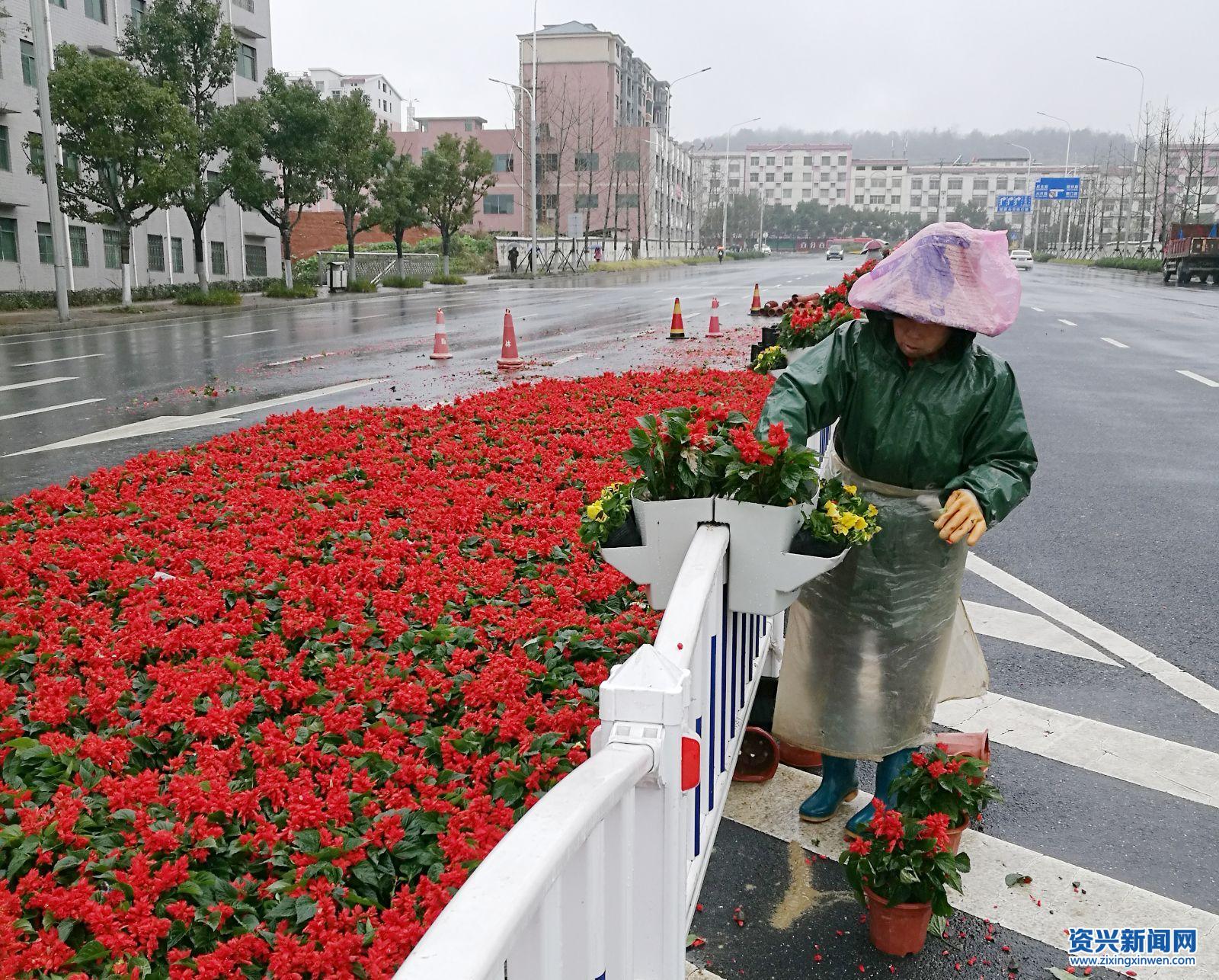 资兴新闻网讯(通讯员 程小红)近日,我市给城区道路隔离带安装了花箱。在城区主要干道上随处可见忙碌的园艺工人,尽管阴雨绵绵,寒风凄切,园林工人们全部坚守在工作岗位上,正紧张地摆放花盆,摆花造型、浇水灌溉,用辛勤的劳动美化靓化妆扮着资兴道路,用自己的汗水努力为市民打造一个和谐、美丽的幸福家园。