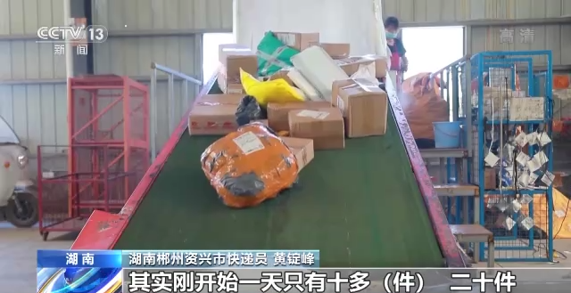 快递员黄锭峰说:“乡镇比较偏远,其实刚开始一天只有十多(件)二十件,慢慢一个月之后就达到(一天)一百多件、两百件。”