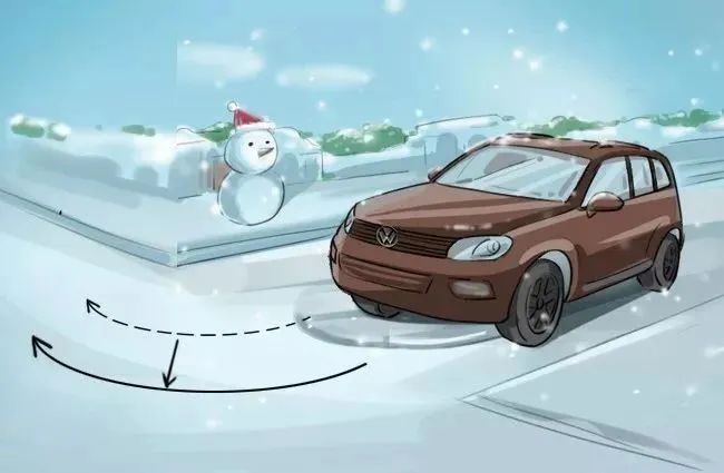 4. 机动车出行中,遇到冰雪、冰冻路面,切勿急踩刹车和猛打方向盘,降低车速安全通过。