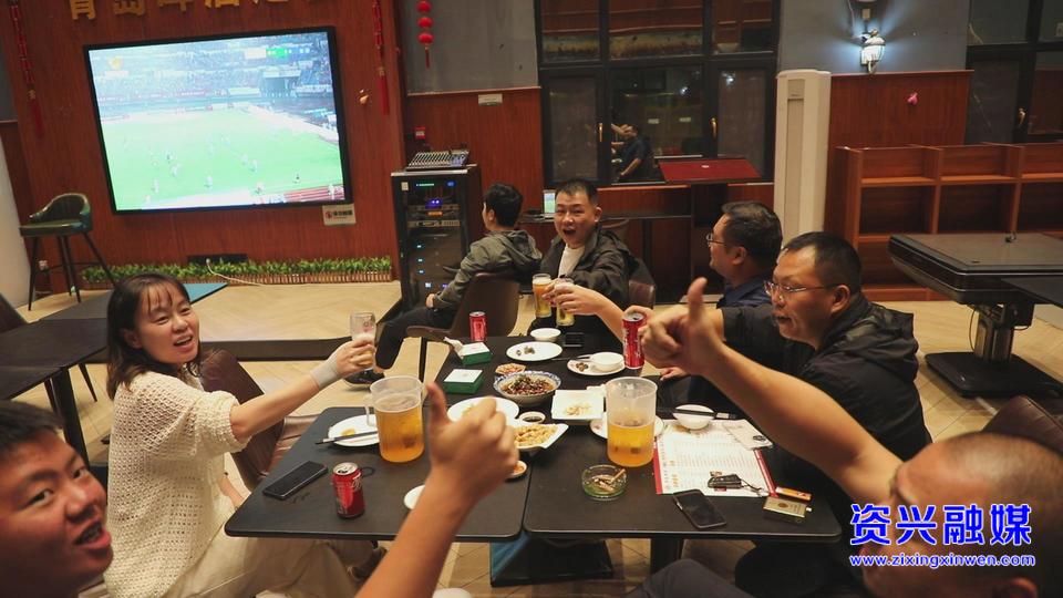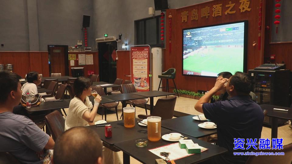 当晚,青岛啤酒(郴州)文化体验中心内气氛热烈。这里作为我市新增的湘超联赛观赛点,一亮相便受到众多球迷的青睐,成为大家共享赛事激情的“第二主场”。20 余名来自各行各业的球迷汇聚于此,他们围坐在超大高清屏幕前,目光紧紧锁定屏幕,欣赏着精彩的比赛。在这里,球迷们一边品尝美食、喝着啤酒,一边为郴州队加油,为这场观赛盛宴增添了十足的烟火气。