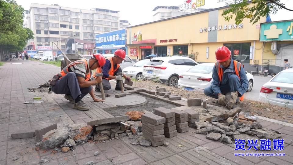 为高效推进修复工作,该中心前期组织对城区人行道开展全面排查,对存在破损、松动、缺失等问题点位逐一登记造册,并按照轻重缓急原则有序组织施工。在市政务中心电力服务办事大厅前的维修现场,施工人员分工协作,有条不紊地拆除破损步砖、平整基层,同步校准窨井与路面高度,确保路面平整一致,有效提升通行舒适度与安全性。