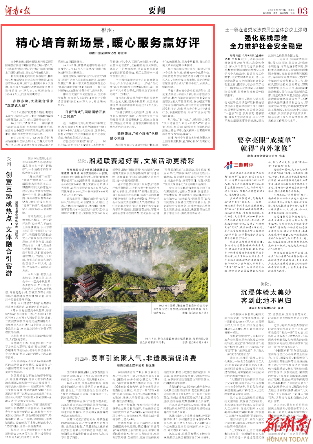 湖南日报要闻头条丨“超级黄金周”看郴州:国潮涌动开启“十二时辰”,“郴心服务”兑现舒心旅游