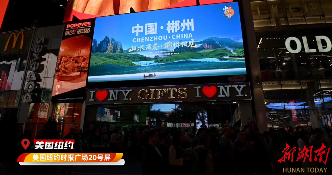 当中秋节遇上国庆假期,郴州裕后街的国潮夜市吸引了韩国游客金仁顺一家八口,“山水画卷·郴州相见”的巨幅主题海报则登上了纽约、新加坡、香港、首尔的户外地标大屏。