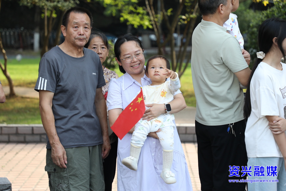 仪式现场,浓厚的爱国情怀涌动。市民欧璐菁特意带着孩子前来观礼,她激动地表示:“第一次带孩子来观看升国旗仪式,感到非常开心和荣幸。在这个特别的日子里,我们衷心祝福祖国更加繁荣富强。”