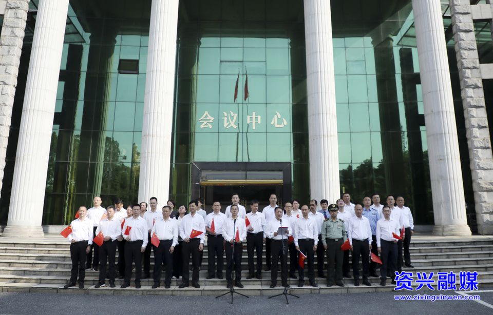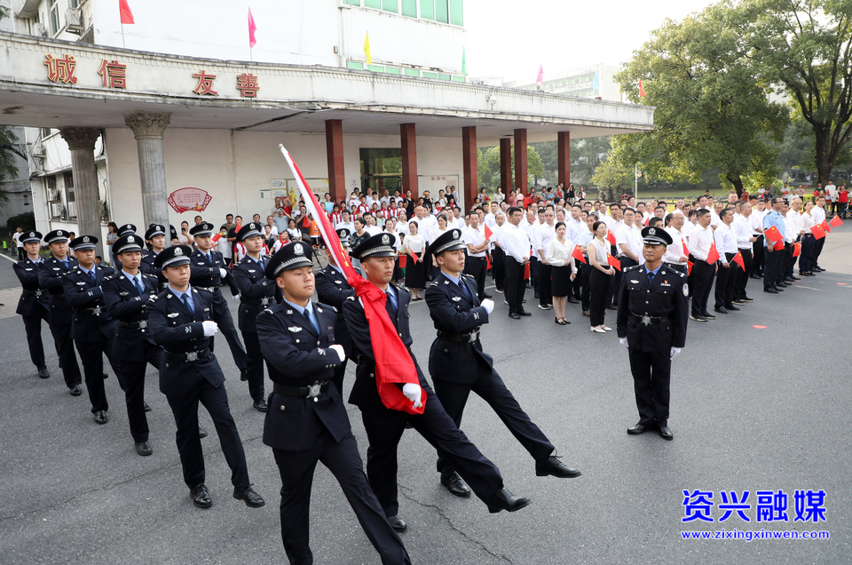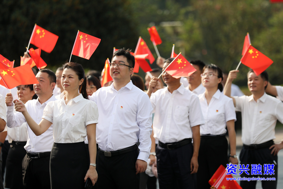 10月1日上午,资兴市在市会议中心前广场举行升国旗仪式,庆祝中华人民共和国成立76周年。市委书记杨理诚,市委副书记、市长陈占华与全市广大党员干部、群众参加升国旗仪式,祝福伟大祖国繁荣昌盛、国泰民安。